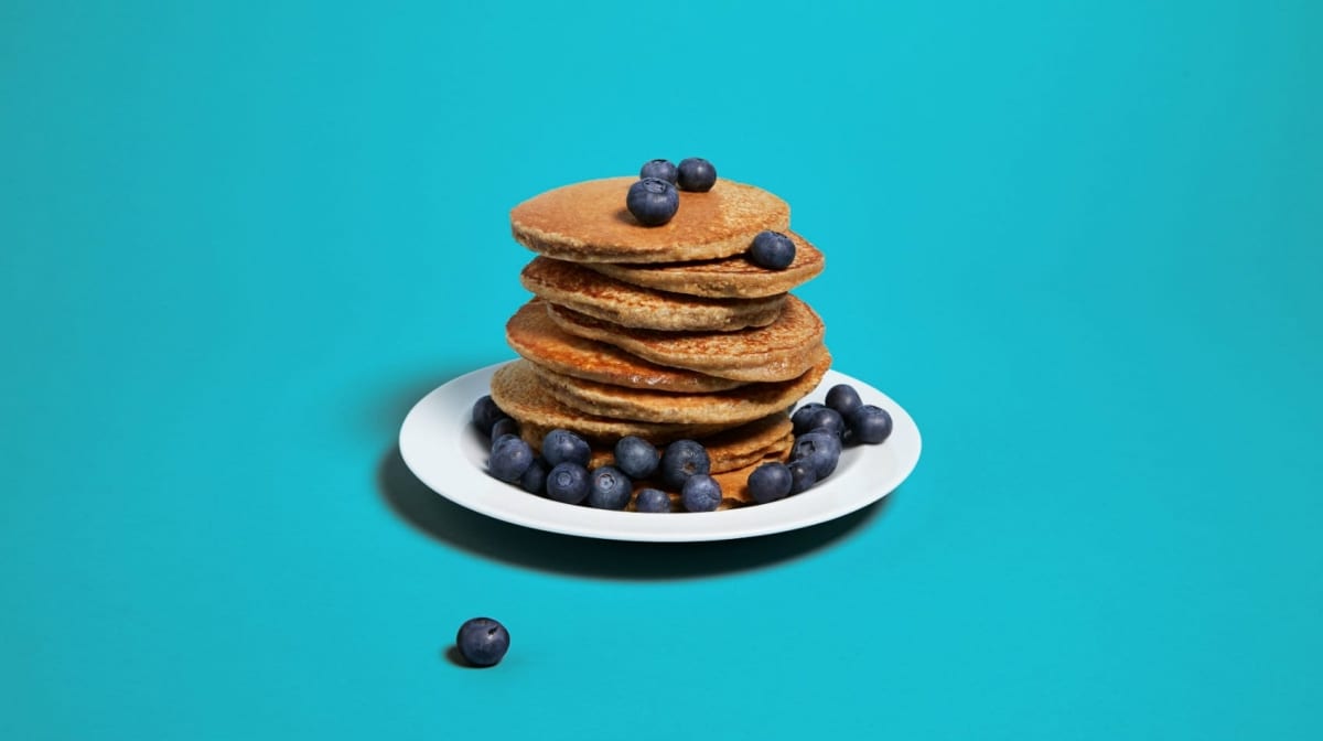 6. Top with your favourite toppings (we think blueberries + Maple Sugar-Free Syrup = the best protein pancakes in the world).