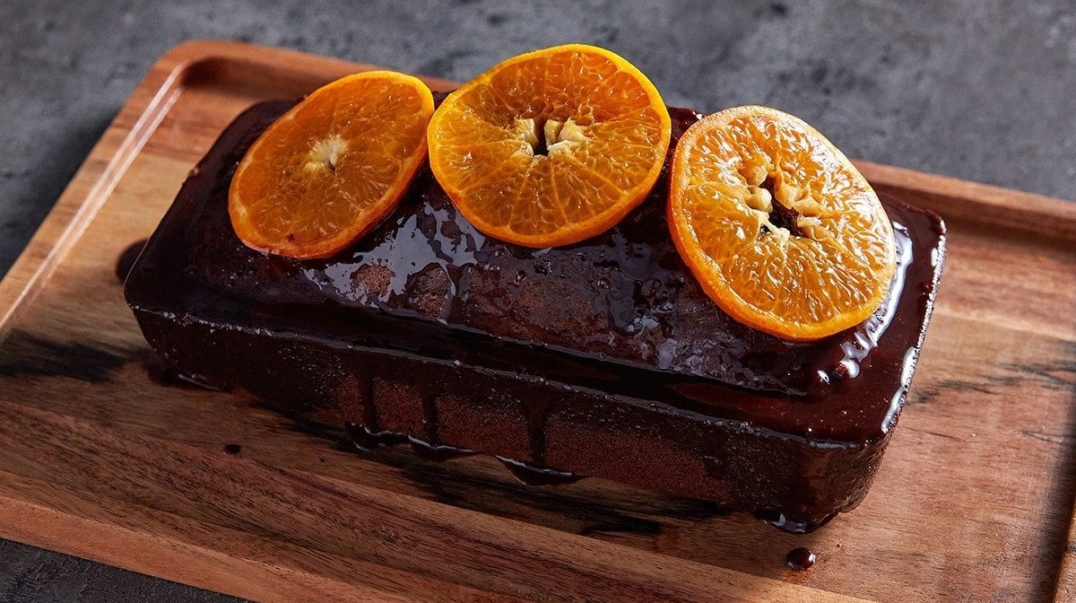 - Carefully remove from the loaf tin, top with orange slices, and then slice up to serve. Enjoy with a dollop of Greek yoghurt if you’re feeling indulgent.