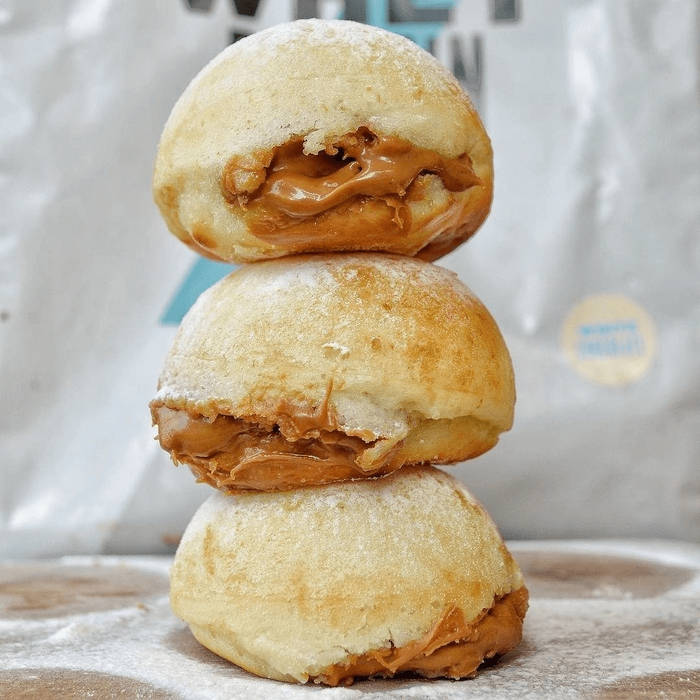 🍩Protein Biscoff Donuts🍩RECIPE: Ingredients: Donuts: 50g Flour, 30g Cereal Milk Whey, 2 Tbs Sweetener, 3g Baking Powder, 2g BiCarb Soda, 150g Low Fat Greek Yoghurt , 1 Egg White (approx 40g), 5ml Vanilla Essence Filling: 90g Biscoff